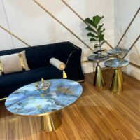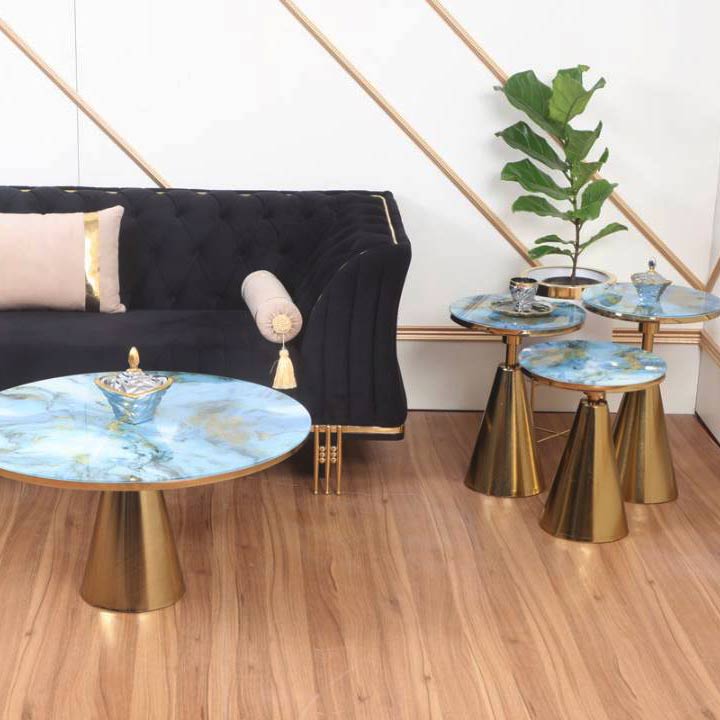میز جلو مبلی مدل کوردلین طلایی، یکی از محبوب ترین انواع ست میز جلو مبلی و عسلی می باشد. این نوع میز جلو مبلی به دلیل چایه های مخروطی تعادل زیادی داشته و در نگهداری اشیاء بسیار مقاوم است.